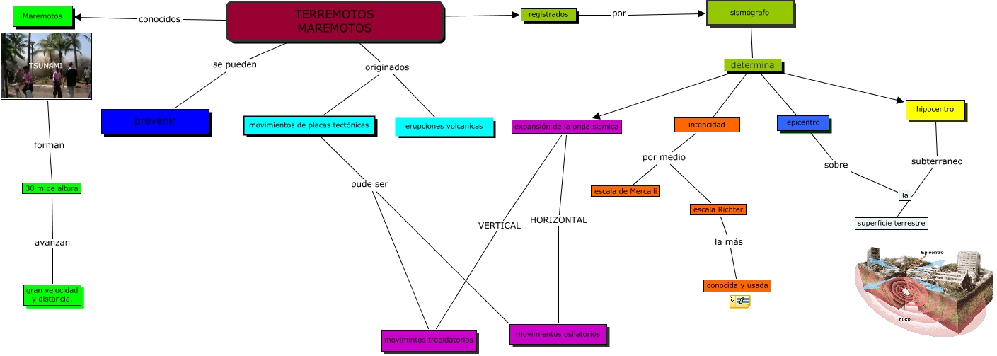 Este Cmap, tiene información relacionada con: TERREMOTOS, intencidad por medio escala Richter, sismógrafo determina expansión de la onda sismica, expansión de la onda sismica HORIZONTAL movimientos osilatorios, expansión de la onda sismica VERTICAL movimintos trepidatorios, TSUNAMI forman 30 m.de altura, intencidad por medio escala de Mercalli, sismógrafo determina epicentro, sismógrafo determina hipocentro, movimientos de placas tectónicas originados erupciones volcanicas, TERREMOTOS MAREMOTOS originados erupciones volcanicas, epicentro sobre la, TERREMOTOS MAREMOTOS conocidos Maremotos, movimientos de placas tectónicas pude ser movimintos trepidatorios, escala Richter la más conocida y usada, sismógrafo determina intencidad, TERREMOTOS MAREMOTOS se pueden prevenir, movimientos de placas tectónicas pude ser movimientos osilatorios, registrados por sismógrafo, 30 m.de altura avanzan gran velocidad y distancia., hipocentro subterraneo superficie terrestre