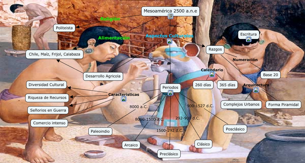 Este Cmap, tiene información relacionada con: Mesoamerica, Mesoamérica 2500 a.n.e Aspectos Culturales Razgos, Periodos Caracteristicas Riqueza de Recursos, Periodos Aspectos Culturales Desarrollo Agricola, Periodos Caracteristicas Comercio intenso, Periodos Aspectos Culturales Razgos, Mesoamérica 2500 a.n.e Religión Politeista, Razgos Calendario 365 días, Periodos 1500-292 d.C. Preclásico, Desarrollo Agricola ???? Chile, Maíz, Frijol, Calabaza, Razgos Arquitectura Complejos Urbanos, Razgos Arquitectura Forma Piramidal, Mesoamérica 2500 a.n.e Aspectos Culturales Desarrollo Agricola, Razgos Numeración Base 20, Razgos Calendario 260 días, Periodos 900-1527 d.C. Posclásico, Periodos 292-900 d.C. Clásico, Razgos Escritura, Periodos Caracteristicas Diversidad Cultural, Mesoamérica 2500 a.n.e Alimentación Chile, Maíz, Frijol, Calabaza, Periodos Caracteristicas Señorios en Guerra