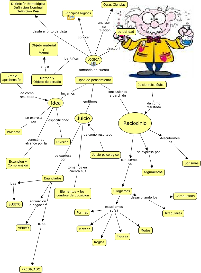 Este Cmap, tiene información relacionada con: LOGICA, Silogismos estudiamos su(s) Formas, LOGICA descubrir su Utilidad, Enunciados afirmación o negación VERBO, Enunciados IDEA PREDICADO, Raciocinio conocemos los Silogismos, LOGICA conocer Principios logicos, Juicio psicologico da como resultado Juicio, LOGICA tomando en cuenta Tipos de pensamiento, LOGICA identificar Método y Objeto de estudio, Tipos de pensamiento emitimos Juicio, Enunciados idea SUJETO, Simple aprehensión da como resultado Idea, Silogismos desarrollando los Compuestos, Silogismos desarrollando los Irregulares, Silogismos estudiamos su(s) Figuras, Silogismos estudiamos su(s) Modos, Tipos de pensamiento conclusiones a partir de Raciocinio, Idea especificando su División, Idea se expresa por PAlabras, Juicio se expresa por Enunciados