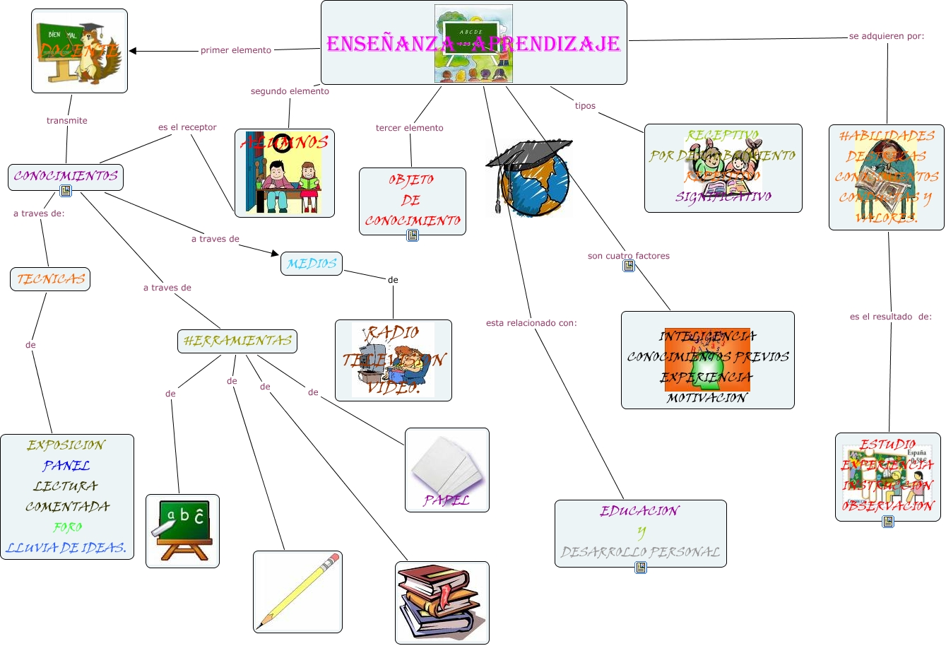 Este Cmap, tiene información relacionada con: ENSEÑANZA-APRENDIZAJE, CONOCIMIENTOS a traves de HERRAMIENTAS, ENSEÑANZA--APRENDIZAJE segundo elemento ALUMNOS, CONOCIMIENTOS a traves de: TECNICAS, MEDIOS de RADIO TELEVISION VIDEO., HERRAMIENTAS de, ENSEÑANZA--APRENDIZAJE se adquieren por: HABILIDADES DESTREZAS CONOCIMIENTOS CONDUCTAS Y VALORES., ENSEÑANZA--APRENDIZAJE tercer elemento OBJETO DE CONOCIMIENTO, TECNICAS de EXPOSICION PANEL LECTURA COMENTADA FORO LLUVIA DE IDEAS., HERRAMIENTAS de PAPEL, DOCENTE transmite CONOCIMIENTOS, ENSEÑANZA--APRENDIZAJE primer elemento DOCENTE, ENSEÑANZA--APRENDIZAJE tipos RECEPTIVO POR DESCUBRIMIENTO REPETITIVO SIGNIFICATIVO, HABILIDADES DESTREZAS CONOCIMIENTOS CONDUCTAS Y VALORES. es el resultado de: ESTUDIO EXPERIENCIA INSTRUCCION OBSERVACION, CONOCIMIENTOS a traves de MEDIOS, HERRAMIENTAS de, HERRAMIENTAS de, ENSEÑANZA--APRENDIZAJE esta relacionado con: EDUCACION Y DESARROLLO PERSONAL, ENSEÑANZA--APRENDIZAJE son cuatro factores INTELIGENCIA CONOCIMIENTOS PREVIOS EXPERIENCIA MOTIVACION, CONOCIMIENTOS es el receptor ALUMNOS