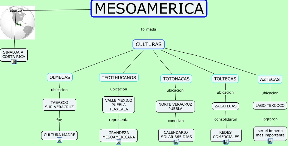Este Cmap, tiene información relacionada con: mesoamerica, NORTE VERACRUZ PUEBLA conocian CALENDARIO SOLAR 365 DIAS, MESOAMERICA formada CULTURAS, VALLE MEXICO PUEBLA TLAXCALA representa GRANDEZA MESOAMERICANA, TEOTIHUCANOS ubicacion VALLE MEXICO PUEBLA TLAXCALA, LAGO TEXCOCO lograron ser el imperio mas importante, CULTURAS TOLTECAS, AZTECAS ubicacion LAGO TEXCOCO, TOTONACAS ubicacion NORTE VERACRUZ PUEBLA, CULTURAS AZTECAS, OLMECAS ubicscion TABASCO SUR VERACRUZ, CULTURAS OLMECAS, CULTURAS TEOTIHUCANOS, ZACATECAS consolidaron REDES COMERCIALES, TABASCO SUR VERACRUZ fue CULTURA MADRE, TOLTECAS ubicacion ZACATECAS, MESOAMERICA abarco SINALOA A COSTA RICA, CULTURAS TOTONACAS