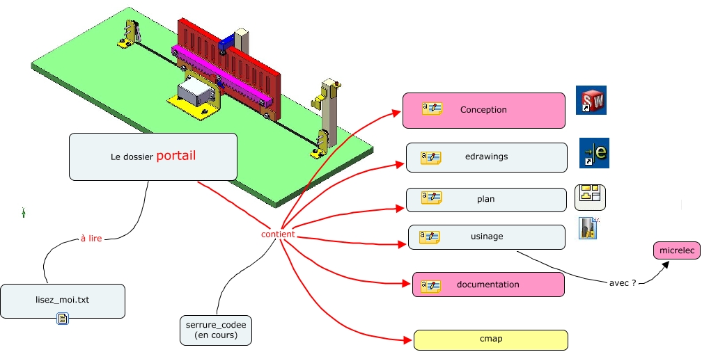 Cette carte de concepts créée avec IHMC CmapTools traite de: dossier_portail, Le dossier portail à lire lisez_moi.txt, usinage avec ? micrelec, Le dossier portail contient plan, Le dossier portail contient serrure_codee (en cours), Le dossier portail contient cmap, Le dossier portail contient edrawings, Le dossier portail contient documentation, Le dossier portail contient Conception, Le dossier portail contient usinage