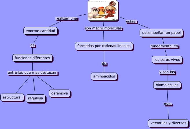 Este Cmap, tiene información relacionada con: proteinas g, funciones diferentes entre las que mas destacan regulosa, los seres vivos y son las biomoleculas, enorme cantidad de funciones diferentes, PROTEINAS son macro moleculas formadas por cadenas lineales, funciones diferentes entre las que mas destacan estructural, PROTEINAS realizan una enorme cantidad, PROTEINAS estas desempeñan un papel, desempeñan un papel fundamental en los seres vivos, biomoleculas mas versatiles y diversas, funciones diferentes entre las que mas destacan defensiva, formadas por cadenas lineales de aminoacidos