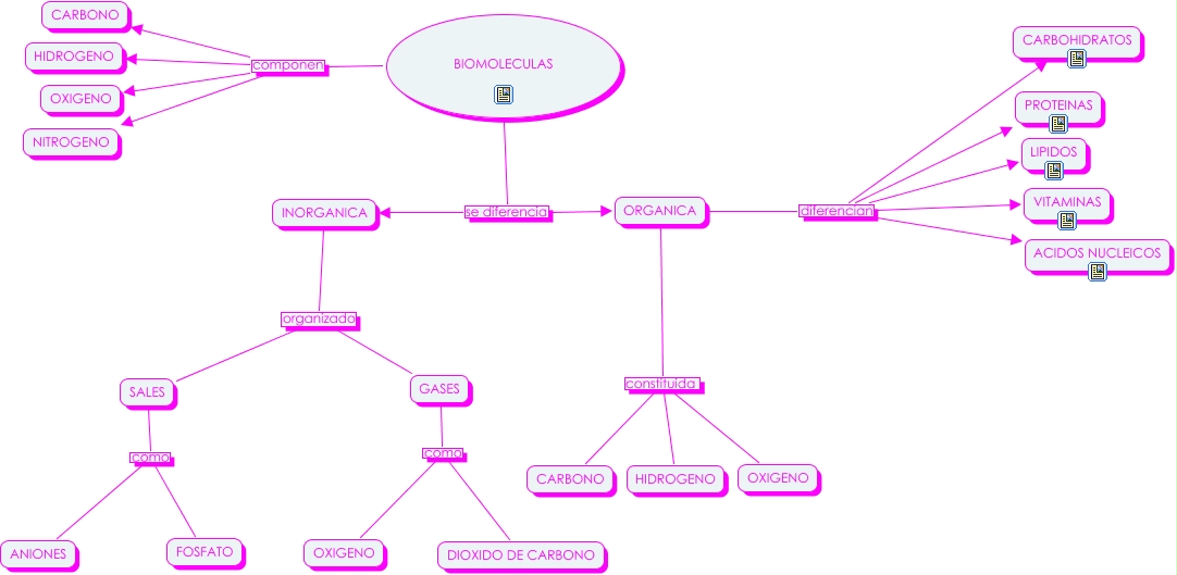 Este Cmap, tiene información relacionada con: BIOMOLECULAS-YAINA ALONSO, ORGANICA constituida HIDROGENO, BIOMOLECULAS componen HIDROGENO, ORGANICA diferencian ACIDOS NUCLEICOS, SALES como FOSFATO, ORGANICA constituida OXIGENO, INORGANICA organizado GASES, GASES como DIOXIDO DE CARBONO, BIOMOLECULAS se diferencia ORGANICA, ORGANICA diferencian LIPIDOS, SALES como ANIONES, ORGANICA diferencian CARBOHIDRATOS, BIOMOLECULAS componen CARBONO, ORGANICA constituida CARBONO, BIOMOLECULAS componen OXIGENO, INORGANICA organizado SALES, ORGANICA diferencian PROTEINAS, GASES como OXIGENO, ORGANICA diferencian VITAMINAS, BIOMOLECULAS componen NITROGENO, BIOMOLECULAS se diferencia INORGANICA