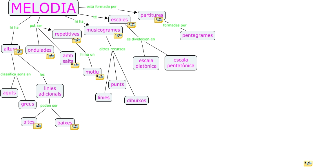 Este Cmap, tiene información relacionada con: Unitat 2, repetitives hi ha un motiu, MELODIA pot ser ondulades, MELODIA pot ser repetitives, altura classifica sons en aguts, musicogrames altres recursos dibuixos, MELODIA hi ha altura, MELODIA té escales, altura les linies adicionals, MELODIA pot ser amb salts, partitures formades per pentagrames, escales es divideixen en escala diatònica, musicogrames altres recursos punts, MELODIA està formada per partitures, altura classifica sons en greus, linies adicionals poden ser altes, linies adicionals poden ser baixes, MELODIA hi ha musicogrames, musicogrames altres recursos línies, escales es divideixen en escala pentatònica