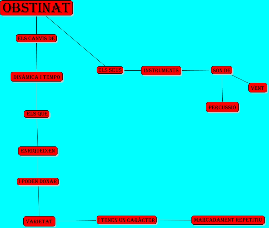 Este Cmap, tiene información relacionada con: Obstinat, instruments són de percussió, instruments són de vent, dinàmica i tempo els que enriqueixen, OBSTINAT els seus instruments, enriqueixen i poden donar varietat, varietat i tenen un caràcter marcadament repetitiu, OBSTINAT els canvis de dinàmica i tempo