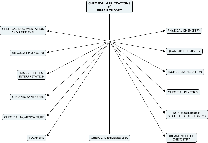 Questa Cmap, creata con IHMC CmapTools, contiene informazioni relative a: GRAFI - 02, CHEMICAL APPLICATIONS of GRAPH THEORY in CHEMICAL KINETICS, CHEMICAL APPLICATIONS of GRAPH THEORY in MASS SPECTRA INTERPRETATION, CHEMICAL APPLICATIONS of GRAPH THEORY in ISOMER ENUMERATION, CHEMICAL APPLICATIONS of GRAPH THEORY in ORGANIC SYNTHESES, CHEMICAL APPLICATIONS of GRAPH THEORY in POLYMERS, CHEMICAL APPLICATIONS of GRAPH THEORY in REACTION PATHWAYS, CHEMICAL APPLICATIONS of GRAPH THEORY in PHYSICAL CHEMISTRY, CHEMICAL APPLICATIONS of GRAPH THEORY in CHEMICAL DOCUMENTATION AND RETRIEVAL, CHEMICAL APPLICATIONS of GRAPH THEORY in QUANTUM CHEMISTRY, CHEMICAL APPLICATIONS of GRAPH THEORY in CHEMICAL ENGENEERING, CHEMICAL APPLICATIONS of GRAPH THEORY in NON-EQUILIBRIUM STATISTICAL MECHANICS, CHEMICAL APPLICATIONS of GRAPH THEORY in ORGANOMETALLIC CHEMISTRY, CHEMICAL APPLICATIONS of GRAPH THEORY in CHEMICAL NOMENCALTURE