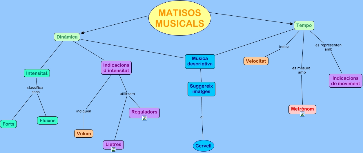 Este Cmap, tiene información relacionada con: Dinámica i tempo - Unitat 3, Tempo ???? Música descriptiva, Intensitat classifica sons Fluixos, Indicacions d`intensitat utilitzam Lletres, Tempo es mesura amb Metrònom, MATISOS MUSICALS ???? Dinàmica, Indicacions d`intensitat indiquen Volum, Música descriptiva al Suggereix imatges, Dinàmica ???? Indicacions d`intensitat, Dinàmica ???? Música descriptiva, Tempo indica Velocitat, Intensitat classifica sons Forts, Dinàmica ???? Intensitat, Tempo es representen amb Indicacions de moviment, Indicacions d`intensitat utilitzam Reguladors, Suggereix imatges al Cervell, MATISOS MUSICALS ???? Tempo