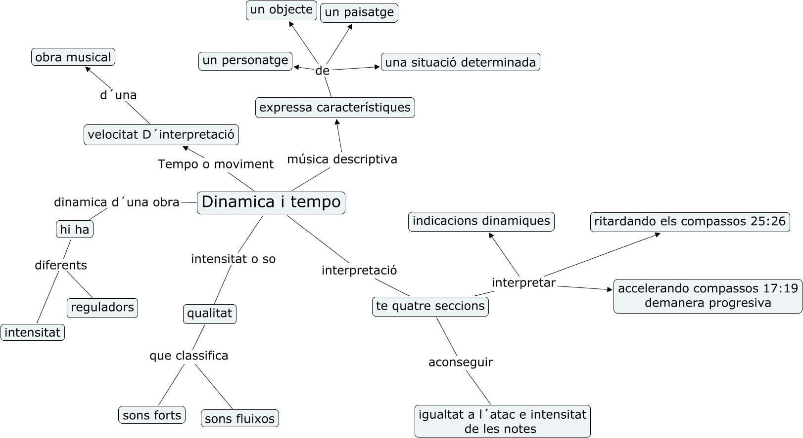 Este Cmap, tiene información relacionada con: tema 3 dinamica i tempo, qualitat que classifica sons forts, qualitat que classifica sons fluixos, te quatre seccions aconseguir igualtat a l´atac e intensitat de les notes, Dinamica i tempo dinamica d´una obra hi ha, Dinamica i tempo música descriptiva expressa característiques, Dinamica i tempo intensitat o so qualitat, te quatre seccions interpretar ritardando els compassos 25:26, te quatre seccions interpretar indicacions dinamiques, velocitat D´interpretació d´una obra musical, Dinamica i tempo Tempo o moviment velocitat D´interpretació, te quatre seccions interpretar accelerando compassos 17:19 demanera progresiva, expressa característiques de un personatge, hi ha diferents reguladors, expressa característiques de un objecte, hi ha diferents intensitat, expressa característiques de una situació determinada, expressa característiques de un paisatge, Dinamica i tempo interpretació te quatre seccions