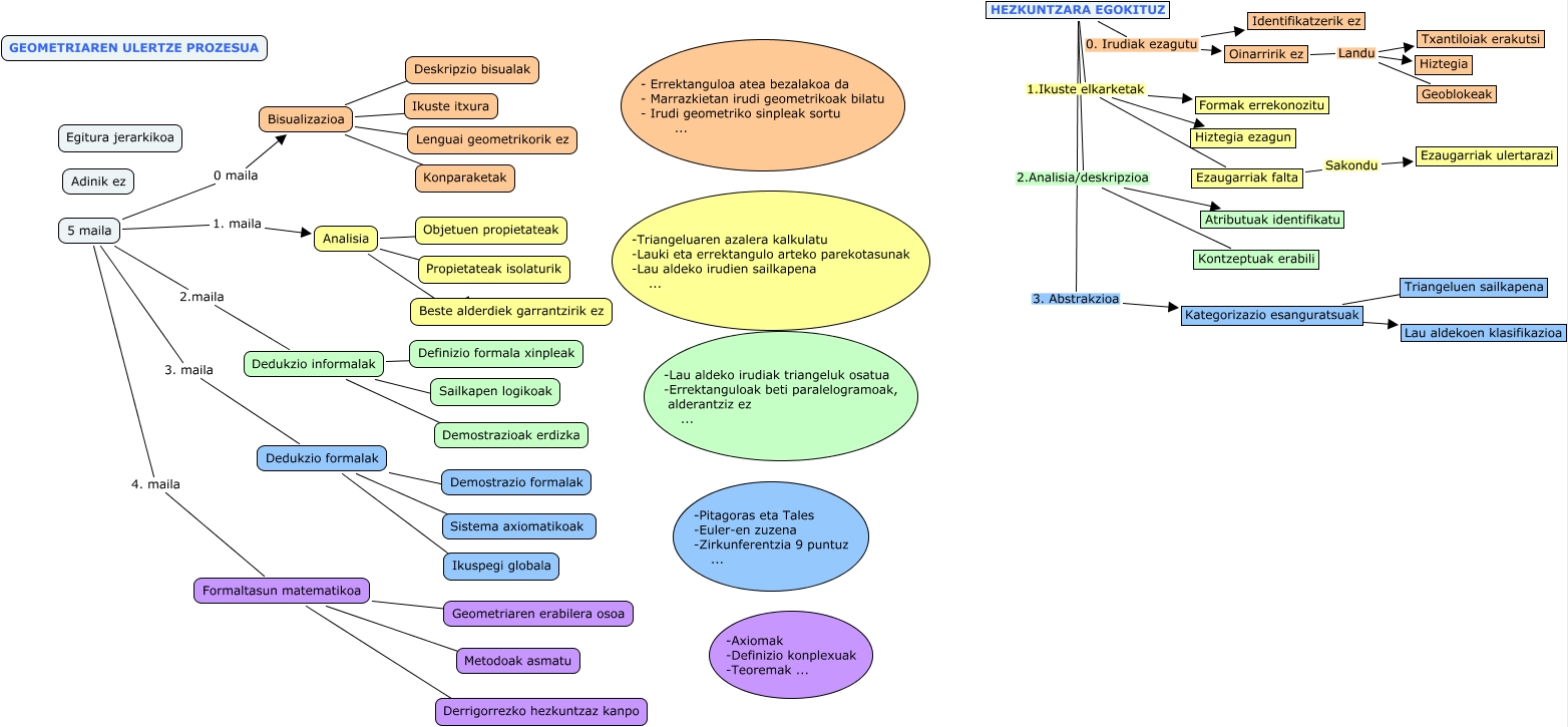 Este Cmap, tiene información relacionada con: VAN HIELE EIDER, 5 maila 3. maila Dedukzio formalak, HEZKUNTZARA EGOKITUZ 2.Analisia/deskripzioa Atributuak identifikatu, HEZKUNTZARA EGOKITUZ 1.Ikuste elkarketak Hiztegia ezagun, HEZKUNTZARA EGOKITUZ 2.Analisia/deskripzioa Kontzeptuak erabili, Dedukzio formalak ???? Demostrazio formalak, Bisualizazioa ???? Ikuste itxura, 5 maila 1. maila Analisia, Dedukzio informalak ???? Sailkapen logikoak, Kategorizazio esanguratsuak ???? Triangeluen sailkapena, Bisualizazioa ???? Konparaketak, Formaltasun matematikoa ???? Derrigorrezko hezkuntzaz kanpo, Dedukzio informalak ???? Demostrazioak erdizka, 5 maila 2.maila Dedukzio informalak, Dedukzio formalak ???? Sistema axiomatikoak, Oinarririk ez Landu Hiztegia, Ezaugarriak falta Sakondu Ezaugarriak ulertarazi, 5 maila 4. maila Formaltasun matematikoa, Analisia ???? Beste alderdiek garrantzirik ez, Oinarririk ez Landu Txantiloiak erakutsi, HEZKUNTZARA EGOKITUZ 0. Irudiak ezagutu Oinarririk ez