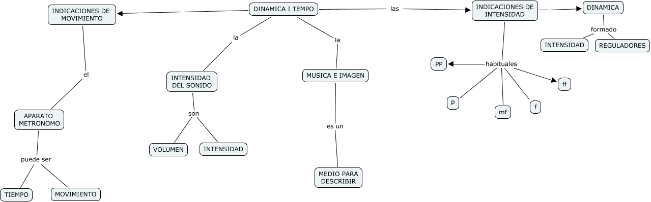 Este Cmap, tiene información relacionada con: Dinamica y tiempo, APARATO METRONOMO puede ser TIEMPO, DINAMICA I TEMPO INDICACIONES DE MOVIMIENTO, INDICACIONES DE MOVIMIENTO el APARATO METRONOMO, INDICACIONES DE INTENSIDAD habituales PP, DINAMICA I TEMPO la MUSICA E IMAGEN, INTENSIDAD DEL SONIDO son INTENSIDAD, INTENSIDAD DEL SONIDO son VOLUMEN, INDICACIONES DE INTENSIDAD habituales p, DINAMICA I TEMPO las INDICACIONES DE INTENSIDAD, MUSICA E IMAGEN es un MEDIO PARA DESCRIBIR, DINAMICA formado INTENSIDAD, INDICACIONES DE INTENSIDAD habituales f, INDICACIONES DE INTENSIDAD habituales mf, DINAMICA formado REGULADORES, DINAMICA I TEMPO la INTENSIDAD DEL SONIDO, INDICACIONES DE INTENSIDAD habituales ff, APARATO METRONOMO puede ser MOVIMIENTO, INDICACIONES DE INTENSIDAD DINAMICA