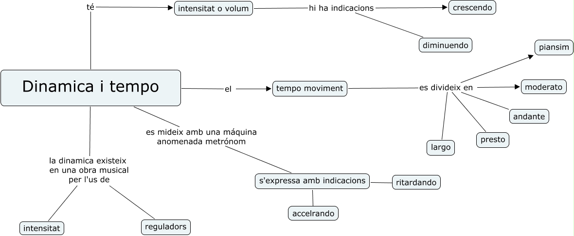 Este Cmap, tiene información relacionada con: TEMA 3, intensitat o volum hi ha indicacions crescendo, s'expressa amb indicacions accelrando, s'expressa amb indicacions ritardando, tempo moviment es divideix en piansim, Dinamica i tempo la dinamica existeix en una obra musical per l'us de reguladors, tempo moviment es divideix en largo, tempo moviment es divideix en moderato, Dinamica i tempo el tempo moviment, tempo moviment es divideix en andante, intensitat o volum hi ha indicacions diminuendo, Dinamica i tempo té intensitat o volum, tempo moviment es divideix en presto, Dinamica i tempo es mideix amb una máquina anomenada metrónom s'expressa amb indicacions, Dinamica i tempo la dinamica existeix en una obra musical per l'us de intensitat