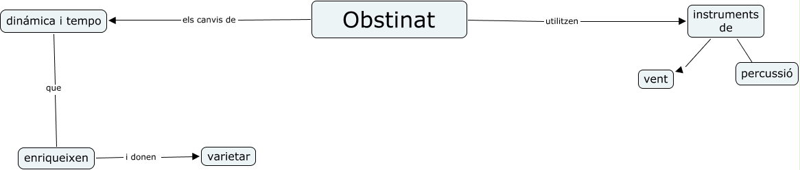 Este Cmap, tiene información relacionada con: TEMA 3 (obstinat), Obstinat els canvis de dinámica i tempo, enriqueixen i donen varietar, instruments de vent, dinámica i tempo que enriqueixen, instruments de percussió, Obstinat utilitzen instruments de