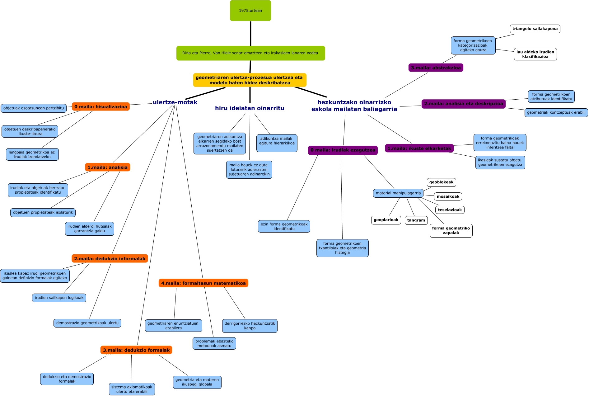 Este Cmap, tiene información relacionada con: Mapa kontzeptuala. GIXANE GARCIA, material manipulagarria ???? teselazioak, 4.maila: formaltasun matematikoa ???? problemak ebazteko metodoak asmatu, geometriaren ulertze-prozesua ulertzea eta modelo baten bidez deskribatzea ulertze-motak 3.maila: dedukzio formalak, 0 maila: irudiak ezagutzea ???? ezin forma geometrikoak identifikatu, 2.maila: dedukzio informalak ???? ikaslea kapaz irudi geometrikoen gainean definizio formalak egiteko, 1975.urtean ???? Dina eta Pierre, Van Hiele senar-emazteen eta irakasleen lanaren xedea, 1975.urtean ???? geometriaren ulertze-prozesua ulertzea eta modelo baten bidez deskribatzea, geometriaren ulertze-prozesua ulertzea eta modelo baten bidez deskribatzea ulertze-motak 4.maila: formaltasun matematikoa, 0 maila: bisualizazioa ???? objetuen deskribapenerako ikuste-itxura, 0 maila: irudiak ezagutzea ???? forma geometrikoen txantiloiak eta geometria hiztegia, 2.maila: dedukzio informalak ???? demostrazio geometrikoak ulertu, geometriaren ulertze-prozesua ulertzea eta modelo baten bidez deskribatzea ulertze-motak 2.maila: dedukzio informalak, material manipulagarria ???? geoplarioak, hezkuntzako oinarrizko eskola mailatan baliagarria ???? 0 maila: irudiak ezagutzea, forma geometrikoen kategorizazioak egiteko gauza ???? lau aldeko irudien klasifikazioa, geometriaren ulertze-prozesua ulertzea eta modelo baten bidez deskribatzea hiru ideiatan oinarritu maila hauek ez dute loturarik adierazten sujetuaren adinarekin, 4.maila: formaltasun matematikoa ???? derrigorrezko hezkuntzatik kanpo, hezkuntzako oinarrizko eskola mailatan baliagarria ???? 2.maila: analisia eta deskripzioa, 4.maila: formaltasun matematikoa ???? geometriaren enuntziatuen erabilera, geometriaren ulertze-prozesua ulertzea eta modelo baten bidez deskribatzea ulertze-motak 0 maila: bisualizazioa