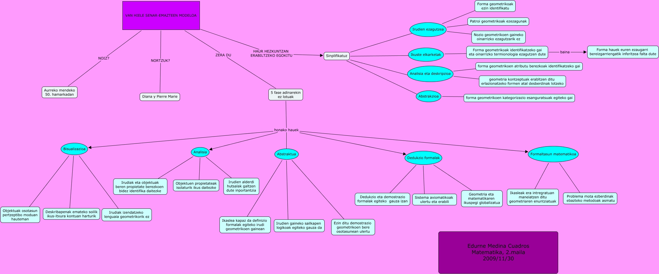 Este Cmap, tiene información relacionada con: Medina, Cuadros, Edurne VAN HIELE, 5 fase adinarekin ez lotuak honako hauek Bisualizazioa, Sinplifikatuz ???? Irudien ezagutzea, Dedukzio formalak ???? Sistema axiomatikoak ulertu eta erabili, Irudien ezagutzea ???? Forma geometrikoak ezin identifikatu, VAN HIELE SENAR-EMAZTEEN MODELOA ZERA DU 5 fase adinarekin ez lotuak, Abstraktua ???? Irudien gaineko sailkapen logikoak egiteko gauza da, Ikuste elkarketak ???? Forma geometrikoak identifikatzeko gai eta oinarrizko termionologia ezagutzen dute, Sinplifikatuz ???? Ikuste elkarketak, 5 fase adinarekin ez lotuak honako hauek Analisia, Dedukzio formalak ???? Geometria eta matematikaren ikuspegi globalizatua, Bisualizazioa ???? Objektuak osotasun pertzeptibo moduan hauteman, 5 fase adinarekin ez lotuak honako hauek Formaltasun matematikoa, Analisia ???? Irudiak eta objektuak beren propietate berezkoen bidez identifika daitezke, Formaltasun matematikoa ???? Ikasleak era intregratuan maneiatzen ditu geometriaren enuntziatuak, Bisualizazioa ???? Deskribapenak emateko soilik ikus-itxura kontuan harturik, Abstraktua ???? Ikaslea kapaz da definizio formalak egiteko irudi geometrikoen gainean, Analisia eta deskripzioa ???? geometria kontzeptuak erabltzen ditu erlazionatzeko formen atal desberdinak lotzeko, 5 fase adinarekin ez lotuak honako hauek Abstraktua, Sinplifikatuz ???? Abstrakzioa, Abstrakzioa ???? forma geometrikoen kategorizazio esanguratsuak egiteko gai