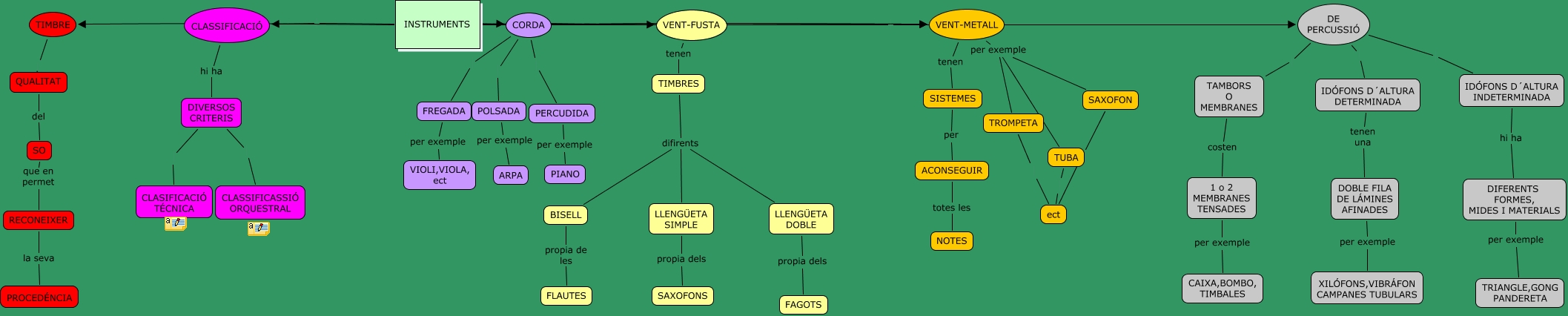 Este Cmap, tiene información relacionada con: instruments, INSTRUMENTS CORDA, VENT-METALL tenen SISTEMES, QUALITAT del SO, DE PERCUSSIÓ IDÓFONS D´ALTURA INDETERMINADA, TAMBORS O MEMBRANES costen 1 o 2 MEMBRANES TENSADES, ACONSEGUIR totes les NOTES, 1 o 2 MEMBRANES TENSADES per exemple CAIXA,BOMBO, TIMBALES, INSTRUMENTS VENT-FUSTA, VENT-METALL per exemple SAXOFON, VENT-METALL per exemple TUBA, DIFERENTS FORMES, MIDES I MATERIALS per exemple TRIANGLE,GONG PANDERETA, DIVERSOS CRITERIS CLASIFICACIÓ TÉCNICA, INSTRUMENTS DE PERCUSSIÓ, SISTEMES per ACONSEGUIR, IDÓFONS D´ALTURA DETERMINADA tenen una DOBLE FILA DE LÁMINES AFINADES, CORDA PERCUDIDA, DE PERCUSSIÓ IDÓFONS D´ALTURA DETERMINADA, RECONEIXER la seva PROCEDÉNCIA, POLSADA per exemple ARPA, DE PERCUSSIÓ TAMBORS O MEMBRANES