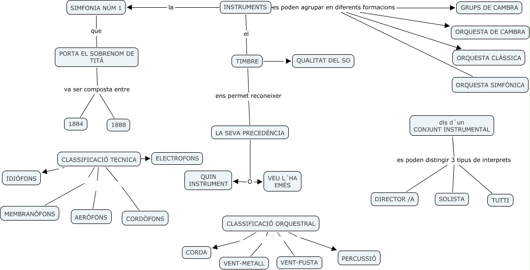 Este Cmap, tiene información relacionada con: Tema 4, INSTRUMENTS es poden agrupar en diferents formacions ORQUESTA DE CAMBRA, TIMBRE ens permet reconeixer LA SEVA PRECEDÈNCIA, CLASSIFICACIÓ TECNICA MEMBRANÒFONS, INSTRUMENTS el TIMBRE, INSTRUMENTS la SIMFONIA NÚM 1, dis d´un CONJUNT INSTRUMENTAL es poden distingir 3 tipus de interprets TUTTI, PORTA EL SOBRENOM DE TITÀ va ser composta entre 1884, LA SEVA PRECEDÈNCIA O QUIN INSTRUMENT, INSTRUMENTS es poden agrupar en diferents formacions GRUPS DE CAMBRA, CLASSIFICACIÓ ORQUESTRAL CORDA, TIMBRE QUALITAT DEL SO, CLASSIFICACIÓ TECNICA ???? ELECTROFONS, dis d´un CONJUNT INSTRUMENTAL es poden distingir 3 tipus de interprets DIRECTOR /A, dis d´un CONJUNT INSTRUMENTAL es poden distingir 3 tipus de interprets SOLISTA, INSTRUMENTS es poden agrupar en diferents formacions ORQUESTA CLÀSSICA, SIMFONIA NÚM 1 que PORTA EL SOBRENOM DE TITÀ, CLASSIFICACIÓ ORQUESTRAL PERCUSSIÓ, CLASSIFICACIÓ TECNICA AERÒFONS, CLASSIFICACIÓ ORQUESTRAL VENT-METALL, CLASSIFICACIÓ TECNICA CORDÒFONS