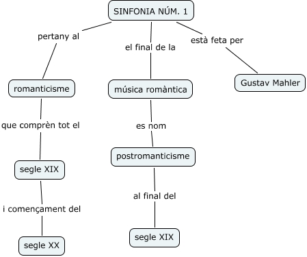 Este Cmap, tiene información relacionada con: sinfonia núm. 1, SINFONIA NÚM. 1 pertany al romanticisme, SINFONIA NÚM. 1 està feta per Gustav Mahler, SINFONIA NÚM. 1 el final de la música romàntica, segle XIX i començament del segle XX, música romàntica es nom postromanticisme, romanticisme que comprèn tot el segle XIX, postromanticisme al final del segle XIX