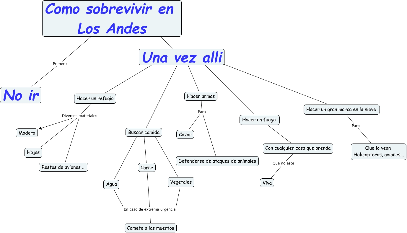 Este Cmap, tiene información relacionada con: Como sobrevivir, Una vez alli ???? Hacer armas, Una vez alli ???? Hacer un refugio, Carne En caso de extrema urgencia Comete a los muertos, Una vez alli ???? Como sobrevivir en Los Andes, Como sobrevivir en Los Andes Primero No ir, Hacer un refugio Diversos materiales Hojas, Hacer un fuego ???? Con cualquier cosa que prenda, Buscar comida ???? Agua, Buscar comida ???? Carne, Buscar comida ???? Vegetales, Una vez alli ???? Hacer un gran marca en la nieve, Hacer armas Para Defenderse de ataques de animales, Hacer un refugio Diversos materiales Restos de aviones ..., Hacer un refugio Diversos materiales Madera, Una vez alli ???? Buscar comida, Hacer un gran marca en la nieve Para Que lo vean Helicopteros, aviones..., Hacer armas Para Cazar, Con cualquier cosa que prenda Que no este Viva, Vegetales En caso de extrema urgencia Comete a los muertos, Una vez alli Hacer un fuego