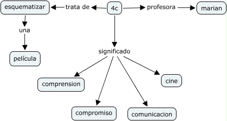 Este Cmap, tiene información relacionada con: 4c, 4c significado comprension, 4c significado comunicacion, esquematizar una película, 4c trata de esquematizar, 4c significado compromiso, 4c significado cine, 4c profesora marian