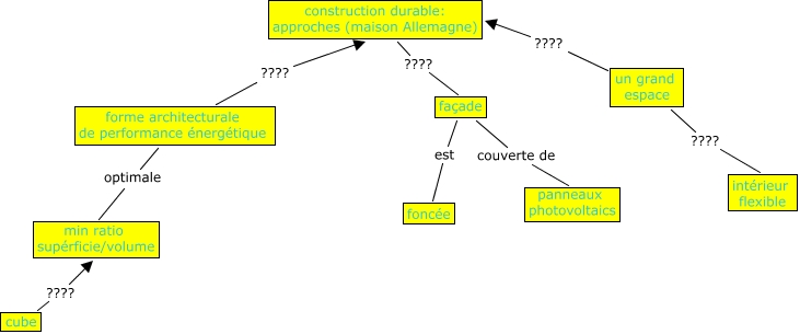 Cette carte de concepts créée avec IHMC CmapTools traite de: 111, forme architecturale de performance énergétique ???? construction durable: approches (maison Allemagne), façade est foncée, façade couverte de panneaux photovoltaics, construction durable: approches (maison Allemagne) ???? façade, un grand espace ???? construction durable: approches (maison Allemagne), un grand espace ???? intérieur flexible, forme architecturale de performance énergétique optimale min ratio supérficie/volume, cube ???? min ratio supérficie/volume