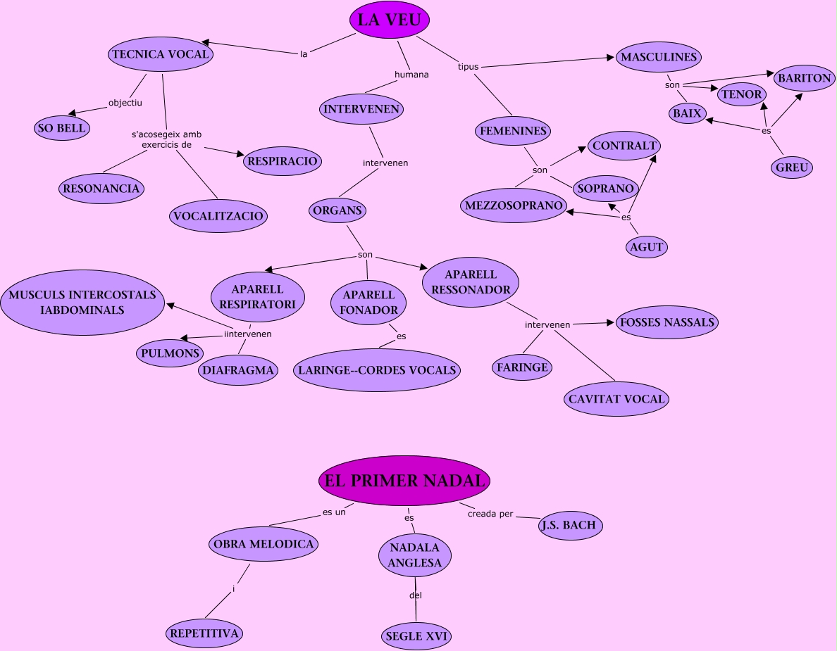 Este Cmap, tiene información relacionada con: T-5 (la veu), NADALA ANGLESA ???? SEGLE XVI, LA VEU la TECNICA VOCAL, LA VEU humana INTERVENEN, ORGANS son APARELL RESSONADOR, APARELL RESPIRATORI iintervenen MUSCULS INTERCOSTALS IABDOMINALS, APARELL RESSONADOR intervenen FARINGE, TECNICA VOCAL objectiu SO BELL, MASCULINES son BARITON, INTERVENEN intervenen ORGANS, MASCULINES son TENOR, GREU es TENOR, ORGANS son APARELL RESPIRATORI, NADALA ANGLESA del SEGLE XVI, LA VEU tipus MASCULINES, OBRA MELODICA i REPETITIVA, APARELL RESSONADOR intervenen CAVITAT VOCAL, APARELL RESPIRATORI iintervenen DIAFRAGMA, TECNICA VOCAL s'acosegeix amb exercicis de RESPIRACIO, AGUT es MEZZOSOPRANO, TECNICA VOCAL s'acosegeix amb exercicis de VOCALITZACIO