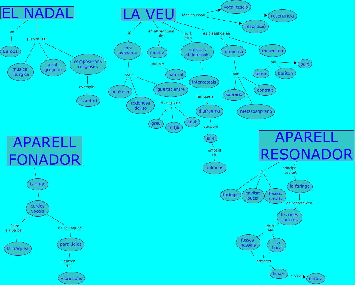 Este Cmap, tiene información relacionada con: La Veu, masculina són baix, cordes vocals l´aire arriba per la tràquea, cordes vocals es col.loquen paral.leles, masculina són tenor, femenina són contralt, les ones sonores entre les fosses nassals, masculina són baríton, LA VEU tècnica vocal respiració, igualtat entre els registres agut, LA VEU tècnica vocal resonància, igualtat entre els registres greu, diafragma succioni aire, tres aspectes com rodonesa del so, i la boca i projecta la veu, EL NADAL present en composicions religioses, intercostals fan que el diafragma, composicions religioses exemple: l´oratori, tres aspectes com igualtat entre, APARELL RESONADOR és fosses nasals, EL NADAL present en cant gregorià