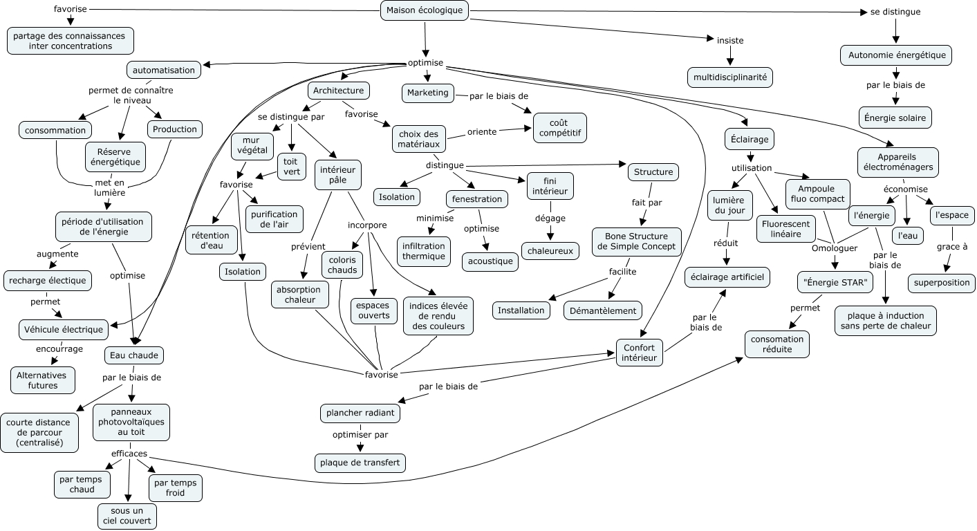 Cette carte de concepts créée avec IHMC CmapTools traite de: Maison solaire projet 1.cmap