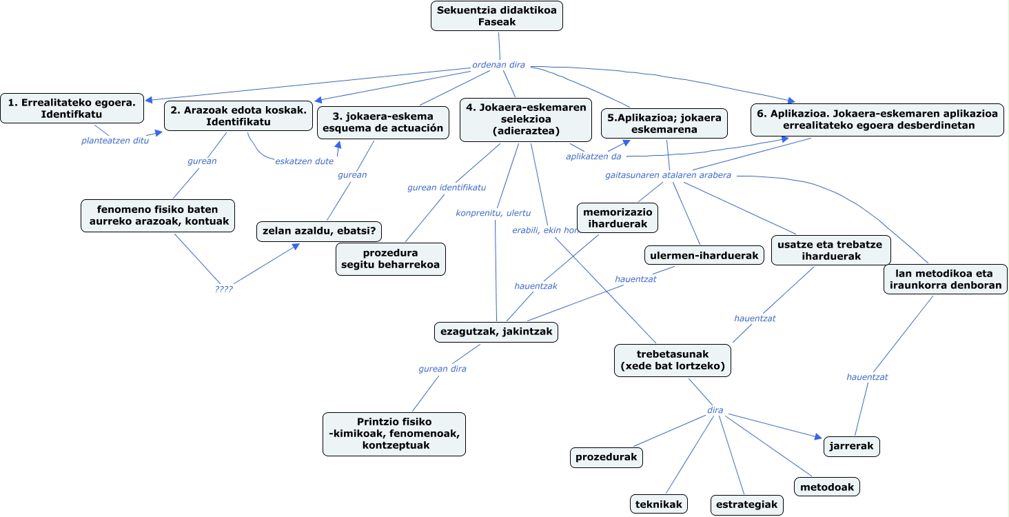 Este Cmap, tiene información relacionada con: SekuentziaDidaktikoa, Sekuentzia didaktikoa Faseak ordenan dira 3. jokaera-eskema esquema de actuación, 4. Jokaera-eskemaren selekzioa (adieraztea) erabili, ekin honi trebetasunak (xede bat lortzeko), trebetasunak (xede bat lortzeko) dira prozedurak, 2. Arazoak edota koskak. Identifikatu eskatzen dute 3. jokaera-eskema esquema de actuación, lan metodikoa eta iraunkorra denboran hauentzat jarrerak, 1. Errealitateko egoera. Identifkatu planteatzen ditu 2. Arazoak edota koskak. Identifikatu, trebetasunak (xede bat lortzeko) dira jarrerak, Sekuentzia didaktikoa Faseak ordenan dira 6. Aplikazioa. Jokaera-eskemaren aplikazioa errealitateko egoera desberdinetan, Sekuentzia didaktikoa Faseak ordenan dira 2. Arazoak edota koskak. Identifikatu, Sekuentzia didaktikoa Faseak ordenan dira 5.Aplikazioa; jokaera eskemarena, 6. Aplikazioa. Jokaera-eskemaren aplikazioa errealitateko egoera desberdinetan gaitasunaren atalaren arabera lan metodikoa eta iraunkorra denboran, fenomeno fisiko baten aurreko arazoak, kontuak ???? zelan azaldu, ebatsi?, ezagutzak, jakintzak gurean dira Printzio fisiko -kimikoak, fenomenoak, kontzeptuak, 6. Aplikazioa. Jokaera-eskemaren aplikazioa errealitateko egoera desberdinetan gaitasunaren atalaren arabera usatze eta trebatze iharduerak, 4. Jokaera-eskemaren selekzioa (adieraztea) aplikatzen da 6. Aplikazioa. Jokaera-eskemaren aplikazioa errealitateko egoera desberdinetan, 6. Aplikazioa. Jokaera-eskemaren aplikazioa errealitateko egoera desberdinetan gaitasunaren atalaren arabera memorizazio iharduerak, 5.Aplikazioa; jokaera eskemarena gaitasunaren atalaren arabera lan metodikoa eta iraunkorra denboran, 5.Aplikazioa; jokaera eskemarena gaitasunaren atalaren arabera usatze eta trebatze iharduerak, 3. jokaera-eskema esquema de actuación gurean zelan azaldu, ebatsi?, ulermen-iharduerak hauentzat ezagutzak, jakintzak