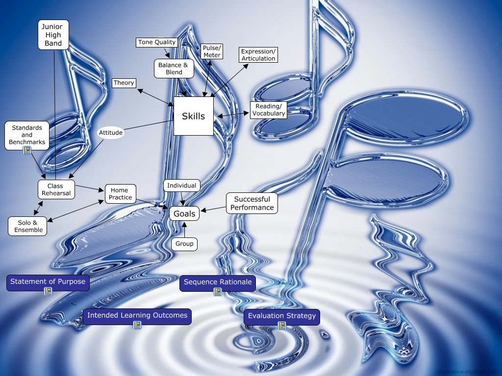 This Concept Map, created with IHMC CmapTools, has information related to: Building Performance Skills in Junior High Band, Class Rehearsal ???? Home Practice, Standards and Benchmarks ???? ????, Individual ???? ????, Skills ???? Expression/ Articulation, Balance & Blend ???? ????, Skills ???? Reading/ Vocabulary, Solo & Ensemble ???? Home Practice, Home Practice ???? Goals, Skills Attitude ????, Skills ???? Pulse/ Meter, Skills ???? Theory, Junior High Band ???? Class Rehearsal, Group ???? Goals, Class Rehearsal ???? Solo & Ensemble, Tone Quality ???? ????