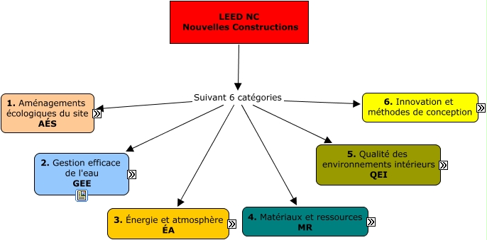 Cette carte de concepts créée avec IHMC CmapTools traite de: LEED NC, Minimiser la pertubation du site Par La réduction de la superficie de développement au sol, Matériaux à faibles émissions Tels que Peintures et enduits, 3. Réduction de la consommation d'eau soit 30%, Énergie et atmosphère Suivant 6 points 3. Mise en service améliorée, Matériaux et ressources Suivant 8 points 4. Favoriser 7,5% ou 10% de contenu recyclé, Aménagement écologique des sites Suivant 8 éléments clés Moyens de transport de remplacement, Matériaux à faibles émissions Tels que Tapis, Matériaux et ressources Suivant 8 points 8. Bâtiment durable, LEED NC Nouvelles Constructions Suivant 6 catégories 4. Matériaux et ressources MR, Qualité des environnements intérieurs Suivant 8 points 6. Contrôle des systèmes par les occupants, Qualité des environnements intérieurs Suivant 8 points Matériaux à faibles émissions, LEED NC Nouvelles Constructions Suivant 6 catégories 2. Gestion efficace de l'eau GEE, LEED NC Nouvelles Constructions Suivant 6 catégories 1. Aménagements écologiques du site AÉS, Gestion des déchets de construction En détournant soit 50% des déchets des sites d’enfouissement, LEED NC Nouvelles Constructions Suivant 6 catégories 3. Énergie et atmosphère ÉA, Gestion des eaux pluviales Par Un bon traitement des eaux, Qualité des environnements intérieurs Suivant 8 points Confort thermique, Matériaux et ressources Suivant 8 points Réutilisaion des bâtiments, Lumière naturelle et vues avec Vues pour 90% des espaces, Favoriser l'utilisation des matériaux régionaux Soit 20% de matériaux d'extraction et de fabrication régionale