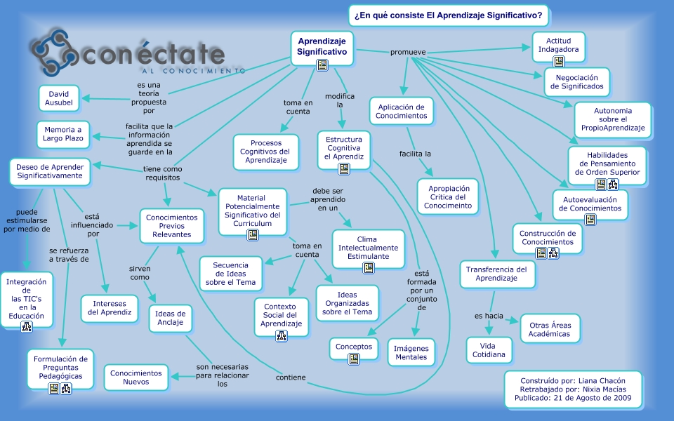 Este Cmap, tiene información relacionada con: Aprendizaje Significativo, Aprendizaje Significativo tiene como requisitos Conocimientos Previos Relevantes, Deseo de Aprender Significativamente está influenciado por Intereses del Aprendiz, Aprendizaje Significativo promueve Habilidades de Pensamiento de Orden Superior, Aprendizaje Significativo promueve Actitud Indagadora, Aprendizaje Significativo promueve Transferencia del Aprendizaje, Material Potencialmente Significativo del Curriculum debe ser aprendido en un Clima Intelectualmente Estimulante, Deseo de Aprender Significativamente está influenciado por Conocimientos Previos Relevantes, Aprendizaje Significativo facilita que la información aprendida se guarde en la Memoria a Largo Plazo, Aplicación de Conocimientos facilita la Apropiación Critica del Conocimeinto, Aprendizaje Significativo promueve Autonomia sobre el PropioAprendizaje, Aprendizaje Significativo promueve Negociación de Significados, Estructura Cognitiva el Aprendiz está formada por un conjunto de Imágenes Mentales, Material Potencialmente Significativo del Curriculum toma en cuenta Ideas Organizadas sobre el Tema, Ideas de Anclaje son necesarias para relacionar los Conocimientos Nuevos, Aprendizaje Significativo toma en cuenta Procesos Cognitivos del Aprendizaje, Aprendizaje Significativo es una teoría propuesta por David Ausubel, Aprendizaje Significativo modifica la Estructura Cognitiva el Aprendiz, Aprendizaje Significativo promueve Aplicación de Conocimientos, Material Potencialmente Significativo del Curriculum toma en cuenta Secuencia de Ideas sobre el Tema, Deseo de Aprender Significativamente puede estimularse por medio de Integración de las TIC's en la Educación