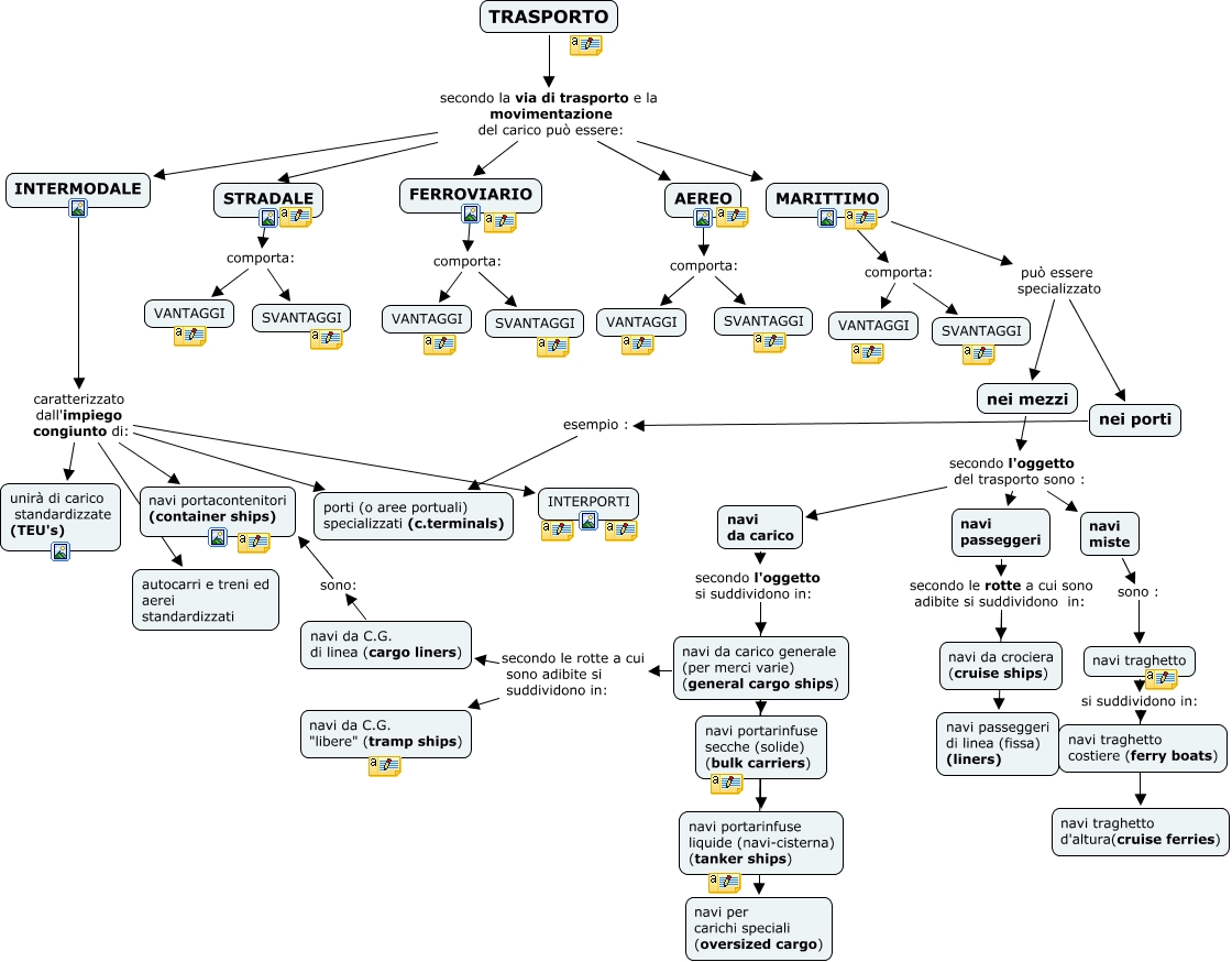 Questa Cmap, creata con IHMC CmapTools, contiene informazioni relative a: trasporto 1 gloria petrazzuolo-CORRETTA, INTERMODALE caratterizzato dall'impiego congiunto di: INTERPORTI, AEREO comporta: VANTAGGI, TRASPORTO secondo la via di trasporto e la movimentazione del carico può essere: FERROVIARIO, MARITTIMO può essere specializzato nei porti, navi da carico generale (per merci varie) (general cargo ships) secondo le rotte a cui sono adibite si suddividono in: navi da C.G. di linea (cargo liners), navi da carico secondo l'oggetto si suddividono in: navi da carico generale (per merci varie) (general cargo ships), navi da C.G. di linea (cargo liners) sono: navi portacontenitori (container ships), navi da carico secondo l'oggetto si suddividono in: navi per carichi speciali (oversized cargo), TRASPORTO secondo la via di trasporto e la movimentazione del carico può essere: INTERMODALE, nei mezzi secondo l'oggetto del trasporto sono : navi da carico, INTERMODALE caratterizzato dall'impiego congiunto di: porti (o aree portuali) specializzati (c.terminals), MARITTIMO può essere specializzato nei mezzi, nei mezzi secondo l'oggetto del trasporto sono : navi passeggeri, INTERMODALE caratterizzato dall'impiego congiunto di: navi portacontenitori (container ships), navi passeggeri secondo le rotte a cui sono adibite si suddividono in: navi passeggeri di linea (fissa) (liners), TRASPORTO secondo la via di trasporto e la movimentazione del carico può essere: MARITTIMO, MARITTIMO comporta: VANTAGGI, nei porti esempio : porti (o aree portuali) specializzati (c.terminals), FERROVIARIO comporta: VANTAGGI, navi da carico generale (per merci varie) (general cargo ships) secondo le rotte a cui sono adibite si suddividono in: navi da C.G. "libere" (tramp ships)
