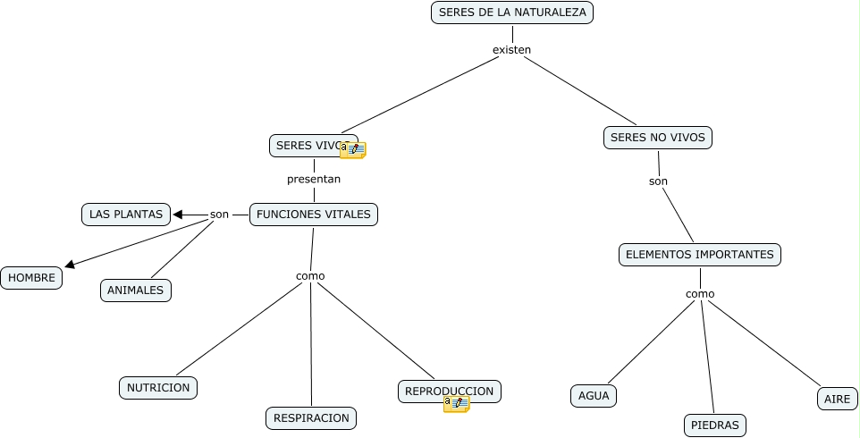 Este Cmap, tiene información relacionada con: Diana Ruiz[1].cmap, FUNCIONES VITALES son LAS PLANTAS, ELEMENTOS IMPORTANTES como AGUA, FUNCIONES VITALES como NUTRICION, ELEMENTOS IMPORTANTES como PIEDRAS, ELEMENTOS IMPORTANTES como AIRE, SERES DE LA NATURALEZA existen SERES NO VIVOS, FUNCIONES VITALES son HOMBRE, FUNCIONES VITALES como REPRODUCCION, SERES DE LA NATURALEZA existen SERES VIVOS, FUNCIONES VITALES como RESPIRACION, SERES VIVOS presentan FUNCIONES VITALES, FUNCIONES VITALES son ANIMALES, SERES NO VIVOS son ELEMENTOS IMPORTANTES