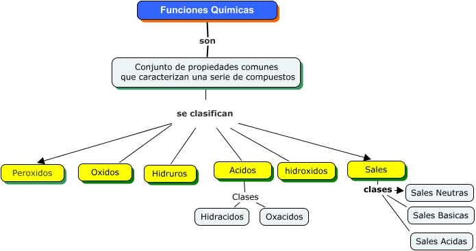 Este Cmap, tiene información relacionada con: Nomenclatura Quimica, Conjunto de propiedades comunes que caracterizan una serie de compuestos se clasifican hidroxidos, Conjunto de propiedades comunes que caracterizan una serie de compuestos se clasifican Peroxidos, Sales clases Sales Acidas, Acidos Clases Hidracidos, Sales clases Sales Basicas, Acidos Clases Oxacidos, Funciones Quimicas son Conjunto de propiedades comunes que caracterizan una serie de compuestos, Oxidos se clasifican Hidruros, Oxidos se clasifican Sales, Oxidos se clasifican Acidos, Conjunto de propiedades comunes que caracterizan una serie de compuestos se clasifican Hidruros, Conjunto de propiedades comunes que caracterizan una serie de compuestos se clasifican Acidos, Sales clases Sales Neutras, Conjunto de propiedades comunes que caracterizan una serie de compuestos se clasifican Sales, Oxidos se clasifican hidroxidos, Oxidos se clasifican Peroxidos