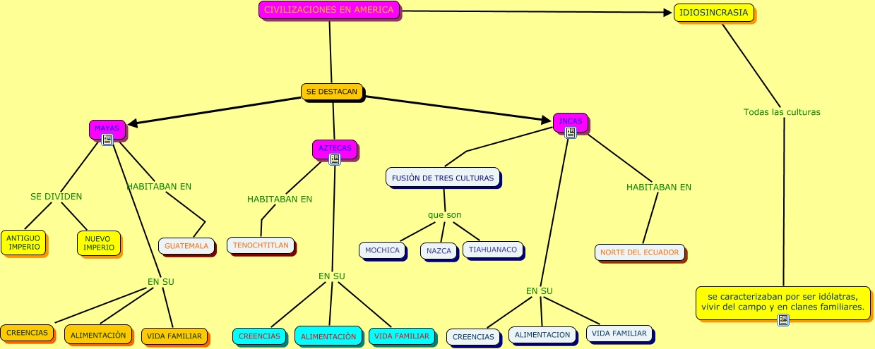 Este Cmap, tiene información relacionada con: CULTURAS PRECOLOMBINAS, CIVILIZACIONES EN AMERICA SE DESTACAN, IDIOSINCRASIA Todas las culturas se caracterizaban por ser idólatras, vivir del campo y en clanes familiares., MAYAS SE DIVIDEN ANTIGUO IMPERIO, FUSIÒN DE TRES CULTURAS que son MOCHICA, FUSIÒN DE TRES CULTURAS que son TIAHUANACO, CIVILIZACIONES EN AMERICA IDIOSINCRASIA, INCAS EN SU ALIMENTACION, INCAS FUSIÒN DE TRES CULTURAS, SE DESTACAN MAYAS, MAYAS EN SU ALIMENTACIÒN, FUSIÒN DE TRES CULTURAS que son NAZCA, MAYAS SE DIVIDEN NUEVO IMPERIO, AZTECAS EN SU CREENCIAS, AZTECAS EN SU VIDA FAMILIAR, MAYAS HABITABAN EN GUATEMALA, SE DESTACAN INCAS, SE DESTACAN AZTECAS, MAYAS EN SU VIDA FAMILIAR, INCAS HABITABAN EN NORTE DEL ECUADOR, MAYAS EN SU CREENCIAS