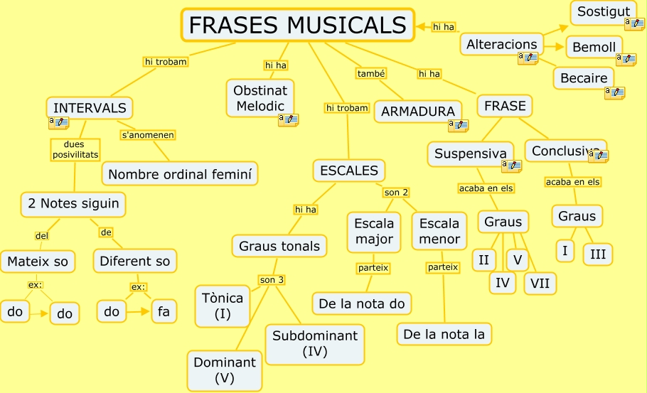 Este Cmap, tiene información relacionada con: UNITAT-7(Frases Musicals), FRASES MUSICALS també ARMADURA, Alteracions ???? Bemoll, do ???? fa, FRASES MUSICALS hi ha Obstinat Melodic, ESCALES son 2 Escala menor, Graus ???? IV, Escala menor parteix De la nota la, III ???? Graus, Escala major parteix De la nota do, ESCALES son 2 Escala major, INTERVALS dues posivilitats 2 Notes siguin, FRASES MUSICALS hi trobam ESCALES, FRASES MUSICALS hi trobam INTERVALS, INTERVALS s'anomenen Nombre ordinal feminí, Graus tonals son 3 Tònica (I), Suspensiva acaba en els Graus, Diferent so ex: do, Alteracions ???? Becaire, Graus V V, 2 Notes siguin del Mateix so