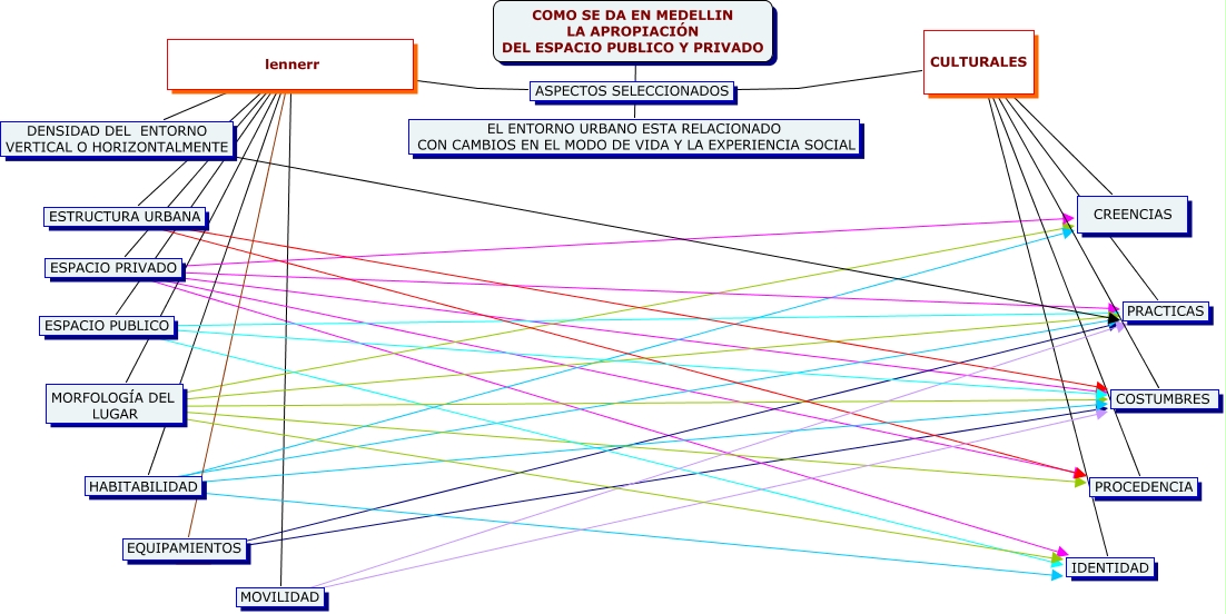 Este Cmap, tiene información relacionada con: INVEST, MORFOLOGÍA DEL LUGAR ???? CREENCIAS, ESPACIO PRIVADO ???? COSTUMBRES, ESPACIO PUBLICO ???? COSTUMBRES, ESPACIO PRIVADO ???? IDENTIDAD, MORFOLOGÍA DEL LUGAR ???? COSTUMBRES, MOVILIDAD ???? COSTUMBRES, EQUIPAMIENTOS ???? PRACTICAS, EQUIPAMIENTOS ???? COSTUMBRES, ASPECTOS SELECCIONADOS CULTURALES CREENCIAS, ASPECTOS SELECCIONADOS lennerr ESPACIO PRIVADO, ESTRUCTURA URBANA ???? PROCEDENCIA, ASPECTOS SELECCIONADOS lennerr HABITABILIDAD, MOVILIDAD ???? PRACTICAS, ESPACIO PRIVADO ???? CREENCIAS, EL ENTORNO URBANO ESTA RELACIONADO CON CAMBIOS EN EL MODO DE VIDA Y LA EXPERIENCIA SOCIAL ???? COMO SE DA EN MEDELLIN LA APROPIACIÓN DEL ESPACIO PUBLICO Y PRIVADO, ESPACIO PUBLICO ???? IDENTIDAD, HABITABILIDAD ???? PRACTICAS, DENSIDAD DEL ENTORNO VERTICAL O HORIZONTALMENTE ???? PRACTICAS, ASPECTOS SELECCIONADOS lennerr EQUIPAMIENTOS, HABITABILIDAD ???? IDENTIDAD