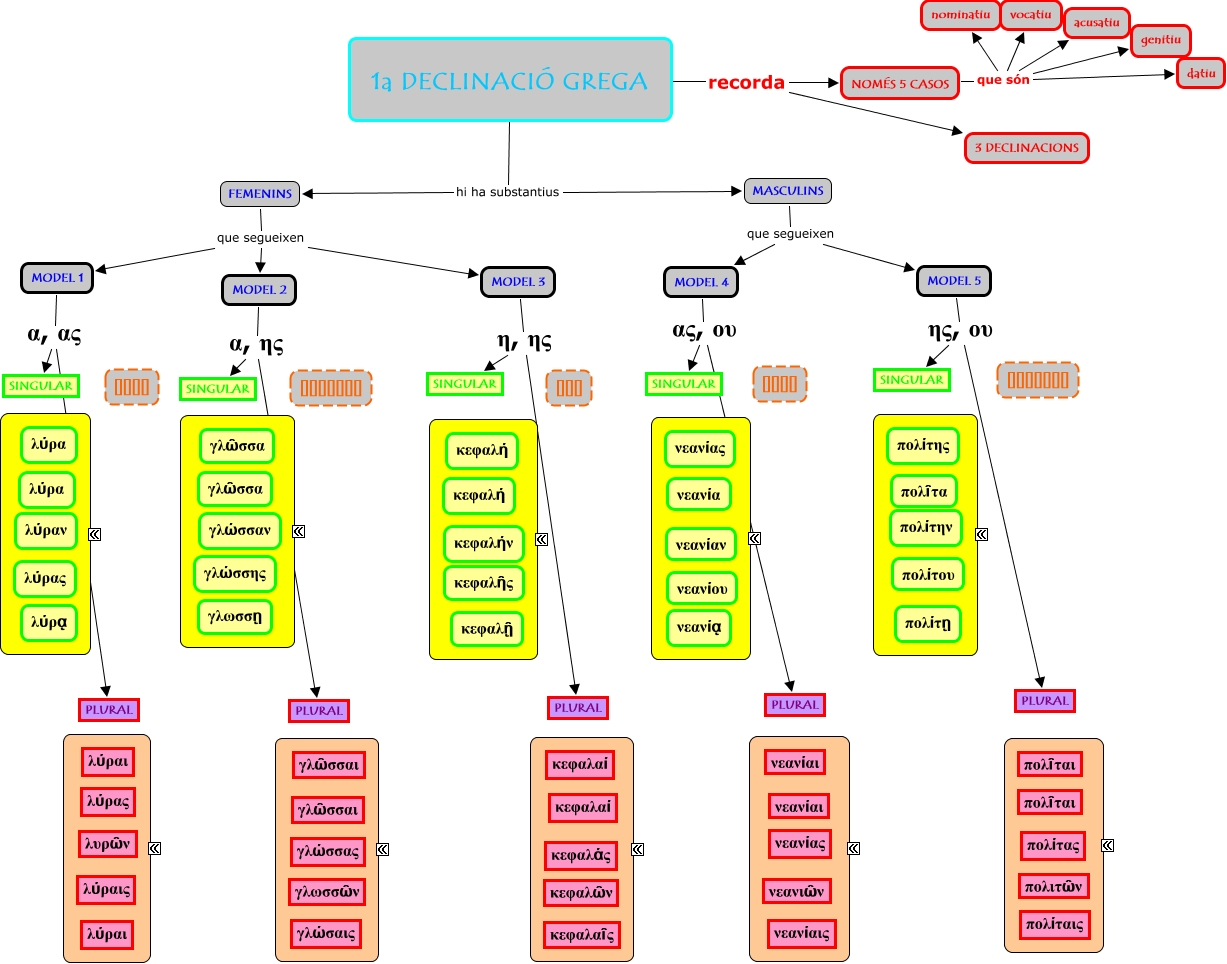 Este Cmap, tiene información relacionada con: 1Grega.cmap, NOMÉS 5 CASOS que són datiu, NOMÉS 5 CASOS que són vocatiu, MASCULINS que segueixen MODEL 5, NOMÉS 5 CASOS que són genitiu, FEMENINS que segueixen MODEL 1, 1a DECLINACIÓ GREGA recorda 3 DECLINACIONS, 1a DECLINACIÓ GREGA hi ha substantius MASCULINS, MODEL 2 α, ης SINGULAR, NOMÉS 5 CASOS que són acusatiu, MODEL 1 α, ας SINGULAR, 1a DECLINACIÓ GREGA hi ha substantius FEMENINS, MODEL 1 α, ας PLURAL, MODEL 2 α, ης PLURAL, MODEL 4 ας, ου PLURAL, NOMÉS 5 CASOS que són nominatiu, MASCULINS que segueixen MODEL 4, MODEL 3 η, ης SINGULAR, MODEL 5 ης, ου SINGULAR, 1a DECLINACIÓ GREGA recorda NOMÉS 5 CASOS, MODEL 3 η, ης PLURAL