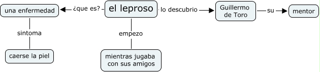 Este Cmap, tiene información relacionada con: lepra, el leproso ¿que es? una enfermedad, el leproso empezo mientras jugaba con sus amigos, el leproso lo descubrio Guillermo de Toro, una enfermedad sintoma caerse la piel, Guillermo de Toro su mentor