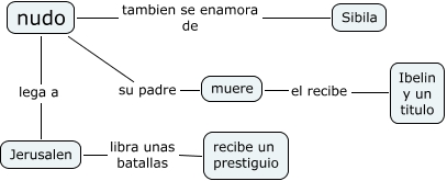 Este Cmap, tiene información relacionada con: nudo, Jerusalen libra unas batallas recibe un prestiguio, nudo su padre muere, muere el recibe Ibelin y un titulo, nudo tambien se enamora de Sibila, nudo lega a Jerusalen