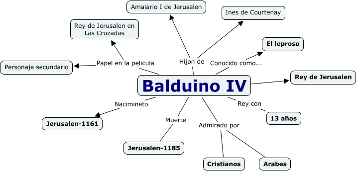 Este Cmap, tiene información relacionada con: Balduino IV, Balduino IV Papel en la pelicula Personaje secundario, Balduino IV Admirado por Cristianos, Balduino IV Hijon de Amalario I de Jerusalen, Balduino IV Muerte Jerusalen-1185, Balduino IV ???? Rey de Jerusalen, Balduino IV Papel en la pelicula Rey de Jerusalen en Las Cruzadas, Balduino IV Conocido como... El leproso, Balduino IV Nacimineto Jerusalen-1161, Balduino IV Hijon de Ines de Courtenay, Balduino IV Rey con 13 años, Balduino IV Admirado por Arabes