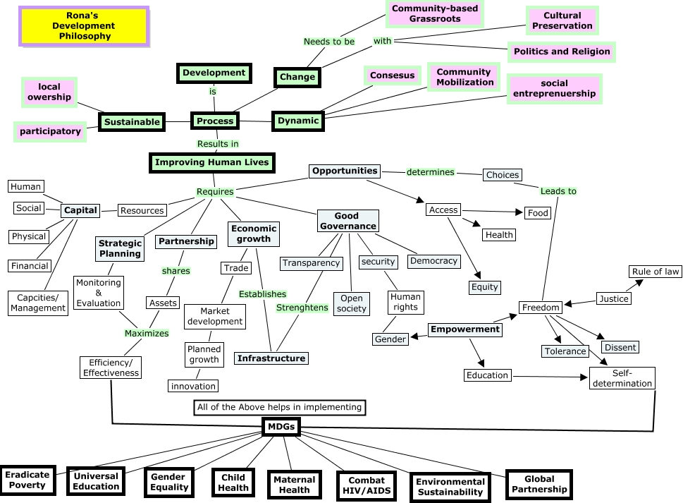 This Concept Map, created with IHMC CmapTools, has information related to: Rona_Dev_phspy, Dynamic Community Mobilization, Dynamic social entreprenuership, MDGs Gender Equality, Education Self- determination, Access Equity, Resources Capital, Improving Human Lives Requires Good Governance, Capital Human, MDGs Eradicate Poverty, MDGs Self- determination, Freedom Leads to Choices, Freedom Dissent, Development is Process, Economic growth Establishes Infrastructure, Freedom Tolerance, Economic growth Trade, Market development Planned growth, Improving Human Lives Requires Economic growth, Opportunities determines Choices, Partnership shares Assets