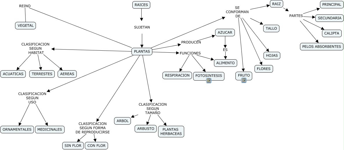 Este Cmap, tiene información relacionada con: PLANTAS, RAIZ PARTES CALIPTA, PLANTAS CLASIFICACION SEGUN HABITAT ACUATICAS, PLANTAS SE CONFORMAN DE FLORES, AZUCAR ES ALIMENTO, PLANTAS CLASIFICACION SEGUN FORMA DE REPRODUCIRSE CON FLOR, PLANTAS SE CONFORMAN DE FRUTO, PLANTAS SE CONFORMAN DE HOJAS, RAIZ PARTES SECUNDARIA, PLANTAS FUNCIONES FOTOSINTESIS, PLANTAS FUNCIONES RESPIRACION, RAICES SUJETAN PLANTAS, PLANTAS SE CONFORMAN DE TALLO, PLANTAS CLASIFICACION SEGUN TAMAÑO ARBUSTO, PLANTAS CLASIFICACION SEGUN HABITAT TERRESTES, PLANTAS CLASIFICACION SEGUN FORMA DE REPRODUCIRSE SIN FLOR, PLANTAS CLASIFICACION SEGUN TAMAÑO PLANTAS HERBACEAS, RAIZ PARTES PELOS ABSORBENTES, PLANTAS PRODUCEN AZUCAR, PLANTAS CLASIFICACION SEGUN USO MEDICINALES, PLANTAS CLASIFICACION SEGUN TAMAÑO ARBOL