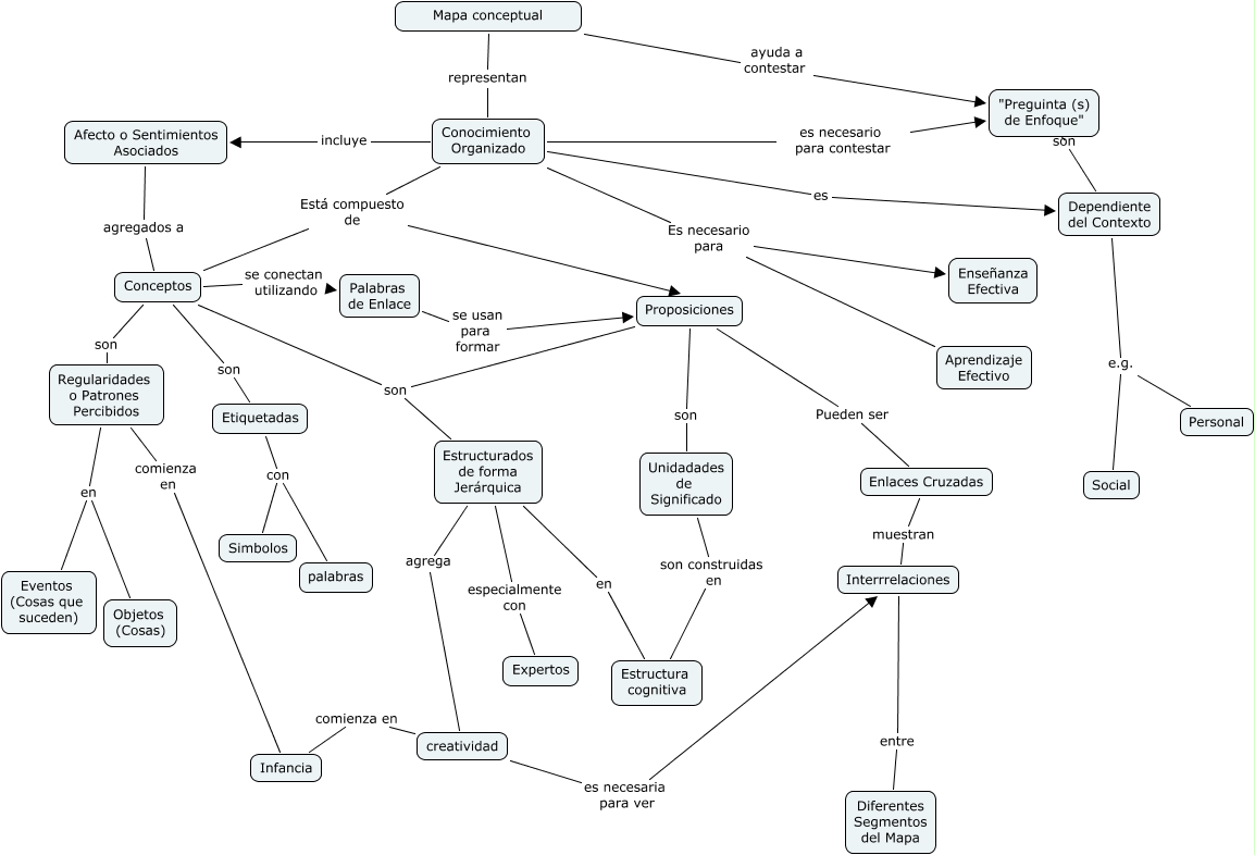 Este Cmap, tiene información relacionada con: Mapa_Conceptual_G03-unmsm_fin, Conocimiento Organizado es necesario para contestar "Preguinta (s) de Enfoque", Etiquetadas con Simbolos, Proposiciones son Unidadades de Significado, Conocimiento Organizado Es necesario para Aprendizaje Efectivo, Interrrelaciones entre Diferentes Segmentos del Mapa, Dependiente del Contexto e.g. Personal, Mapa conceptual ayuda a contestar "Preguinta (s) de Enfoque", Proposiciones Pueden ser Enlaces Cruzadas, Regularidades o Patrones Percibidos en Objetos (Cosas), creatividad es necesaria para ver Interrrelaciones, Conocimiento Organizado es Dependiente del Contexto, Unidadades de Significado son construidas en Estructura cognitiva, Proposiciones son Estructurados de forma Jerárquica, Conocimiento Organizado incluye Afecto o Sentimientos Asociados, Afecto o Sentimientos Asociados agregados a Conceptos, Conocimiento Organizado Está compuesto de Conceptos, Etiquetadas con palabras, Estructurados de forma Jerárquica agrega creatividad, Conceptos son Regularidades o Patrones Percibidos, creatividad comienza en Infancia
