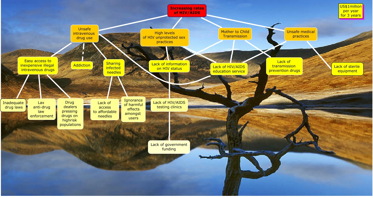 This Concept Map, created with IHMC CmapTools, has information related to: Vietnam, High levels of HIV unprotected sex practices Lack of HIV/AIDS education service, High levels of HIV unprotected sex practices Lack of information on HIV status, Mother to Child Transmission Lack of information on HIV status, Unsafe medical practices Lack of HIV/AIDS education service, Increasing rates of HIV/AIDS Unsafe intravenous drug use, Lack of HIV/AIDS education service Unsafe intravenous drug use, Easy access to inexpensive illegal intravenous drugs Lax anti-drug law enforcement, Unsafe intravenous drug use Addiction, Increasing rates of HIV/AIDS Unsafe medical practices, Increasing rates of HIV/AIDS Mother to Child Transmission, Mother to Child Transmission Lack of HIV/AIDS education service, Unsafe medical practices Lack of sterile equipment, Inadequate drug laws Easy access to inexpensive illegal intravenous drugs, Sharing infected needles Ignorance of harmful effects amongst users, Mother to Child Transmission Lack of transmission prevention drugs, Lack of information on HIV status Lack of HIV/AIDS testing clinics, Increasing rates of HIV/AIDS High levels of HIV unprotected sex practices, Unsafe intravenous drug use Sharing infected needles, Unsafe intravenous drug use Easy access to inexpensive illegal intravenous drugs, Lack of HIV/AIDS testing clinics Lack of government funding
