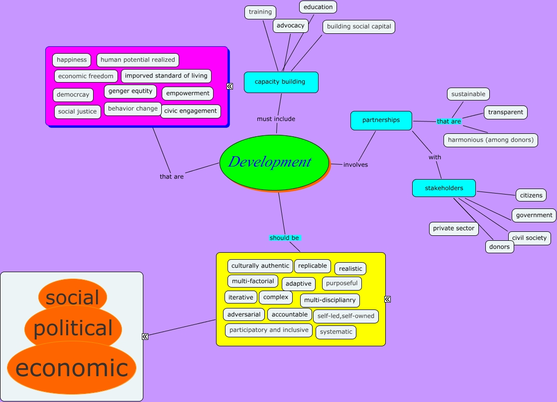 This Concept Map, created with IHMC CmapTools, has information related to: Cyndi's Development Philosophy, stakeholders government, stakeholders private sector, partnerships that are sustainable, Development must include capacity building, capacity building advocacy, Development involves partnerships, ???? ????, ???? that are Development, capacity building building social capital, stakeholders citizens, stakeholders donors, capacity building training, stakeholders civil society, Development should be ????, stakeholders with partnerships, partnerships that are harmonious (among donors), partnerships that are transparent, education capacity building