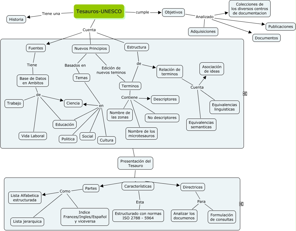 Este Cmap, tiene información relacionada con: Tesauro - UNESCO_Diofanto Alvarado, Presentación del Tesauro Se publica Directrices, Estructura de Relación de terminos, Objetivos Analizado Colecciones de los diversos centros de documentacion, Partes Como Indice Frances/Ingles/Español y viceversa, Tesauros-UNESCO Cuenta Nuevos Principios, Estructura de Terminos, Temas en Cultura, Base de Datos en Ambitos de Vida Laboral, Terminos Contiene Nombre de las zonas, Partes Como Lista jerarquica, Terminos Contiene No descriptores, Temas en Educación, Tesauros-UNESCO Tiene una Historia, Presentación del Tesauro Se publica Partes, Actualización de la Nueva Edición Termina con Presentación del Tesauro, Base de Datos en Ambitos de Educación, Directrices Para Analizar los documenos, Objetivos Analizado Adquisiciones, Objetivos Analizado Documentos, Tesauros-UNESCO cumple Objetivos