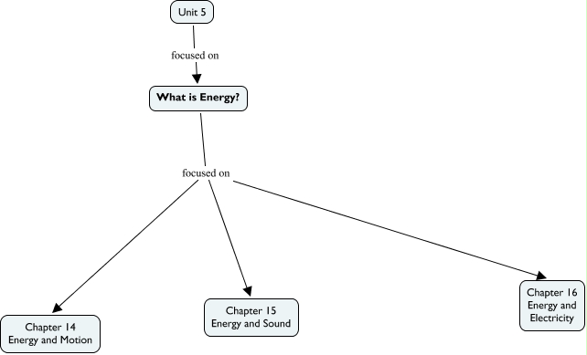 This Concept Map, created with IHMC CmapTools, has information related to: Unit 3 - What is Energy, What is Energy? focused on Chapter 15 Energy and Sound, Unit 5 focused on What is Energy?, What is Energy? focused on Chapter 14 Energy and Motion, What is Energy? focused on Chapter 16 Energy and Electricity