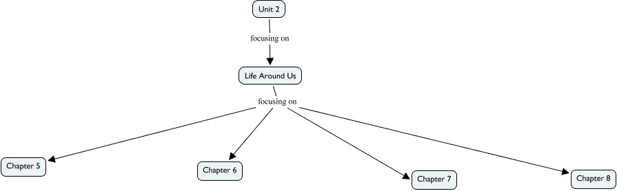 This Concept Map, created with IHMC CmapTools, has information related to: Unit 2 - Life Around Us, Life Around Us focusing on Chapter 5, Life Around Us focusing on Chapter 8, Life Around Us focusing on Chapter 6, Life Around Us focusing on Chapter 7, Unit 2 focusing on Life Around Us